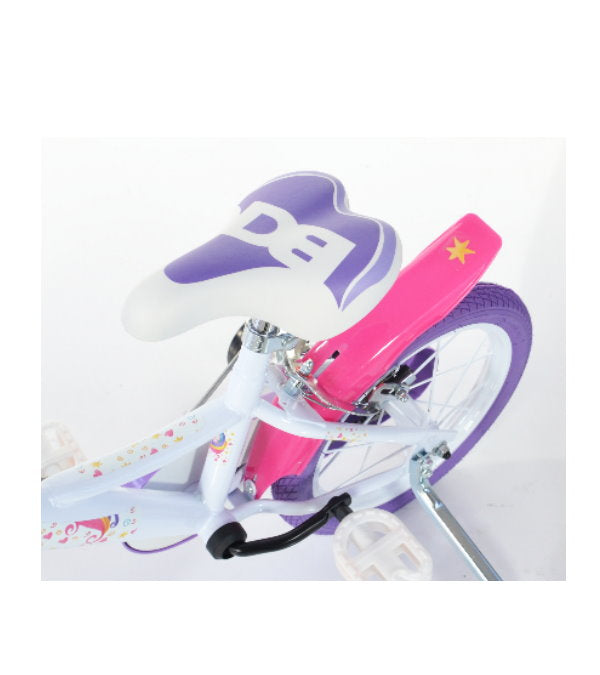 Bicicletă fete 14” Unicorn, 1 viteză, roz/alb/mov